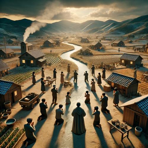 영주의 한 작은 마을은 오랜 가뭄으로 농작물과 가축을 모두 잃을 위기에 처했어요.농민들은 “이대로는 모두 굶어 죽을 거야…”라며 한숨을 쉬었답니다.하지만 마을 외곽, 금빛으로 빛나는 언덕에서 이상한 빛이 새어나오는 것이 보였어요.“저곳에 무언가 희망이 있을지도 몰라…” 농부들은 언덕으로 향했답니다. 언덕의 빛나는 연못가에서 한 농부가 금빛 송아지를 발견했어요.“이 소는 신이 주신 선물이야. 꼭 잘 키워야겠어!”농부는 금송아지를 집으로 데려와 정성을 다해 돌보았답니다.송아지는 점점 건강하고 아름다운 모습으로 자라났고, 마을의 희망이 되었어요. 금소가 자라면서 마을에는 놀라운 변화가 일어났어요.금소가 다니는 곳마다 들판이 푸르게 변하고, 가뭄으로 메말랐던 땅에 작물이 자라났답니다.“이 소는 마을을 구한 기적..